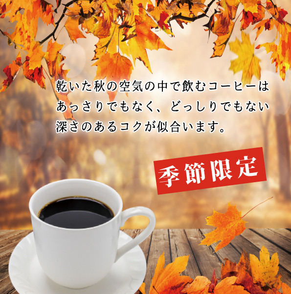 深みのある甘さとコク、なめらかな口当たりが、乾いた秋の空気に心地よく寄り添う限定ブレンドです。